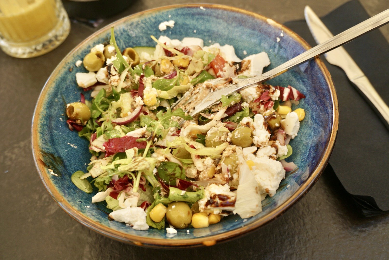 Finally, after hours of uninterrupted walking, I decided to take a break. I sat down and enjoyed a Greek salad while bringing to life the doodles for this blog, finally welcoming my long-lost inspiration after a long-lasting creative drought.